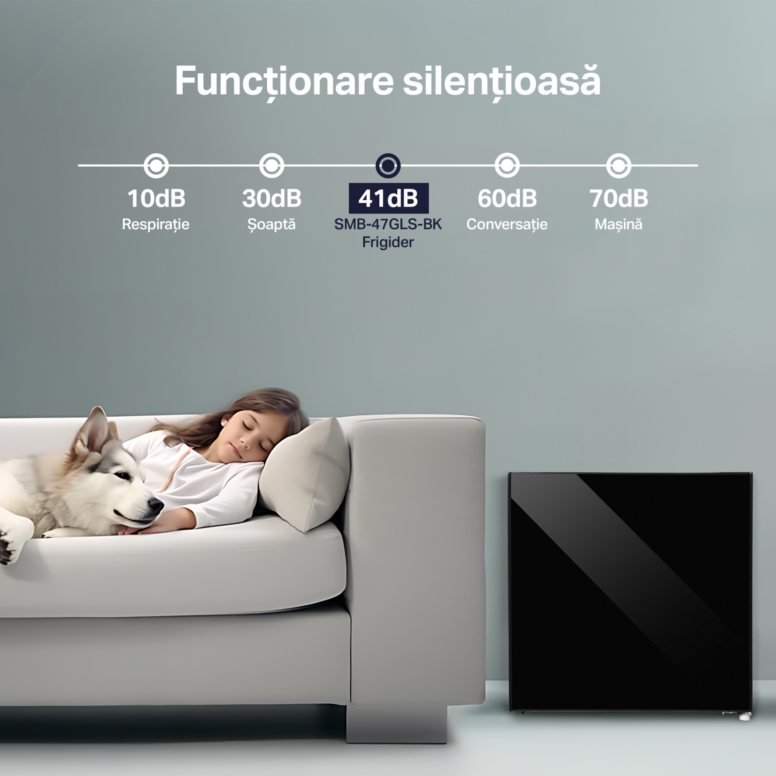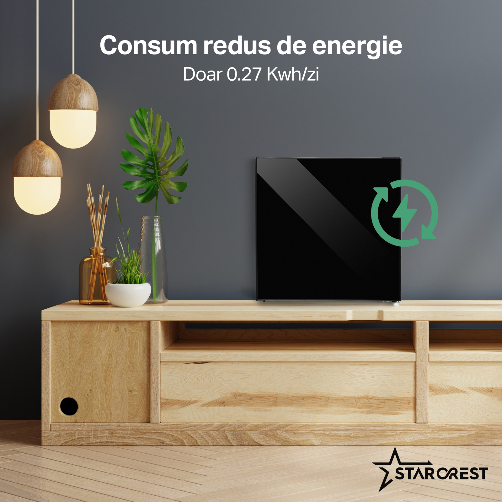 RESIGILAT - Frigider minibar STARCREST SMB-47GLS-BK, Design modern, 46 l, Clasa E, H 48.8 cm, Sticla Neagra