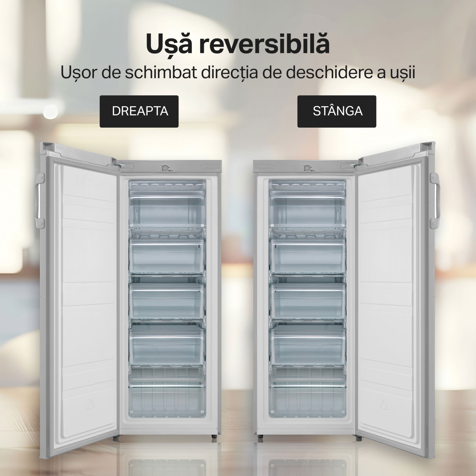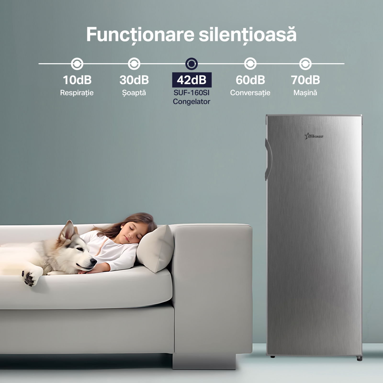 RESIGILAT - Congelator STARCREST SUF-160SI, 160 L, Clasa E, Termostat Ajustabil, Usi reversibile, H 142 cm, Argintiu - Copie