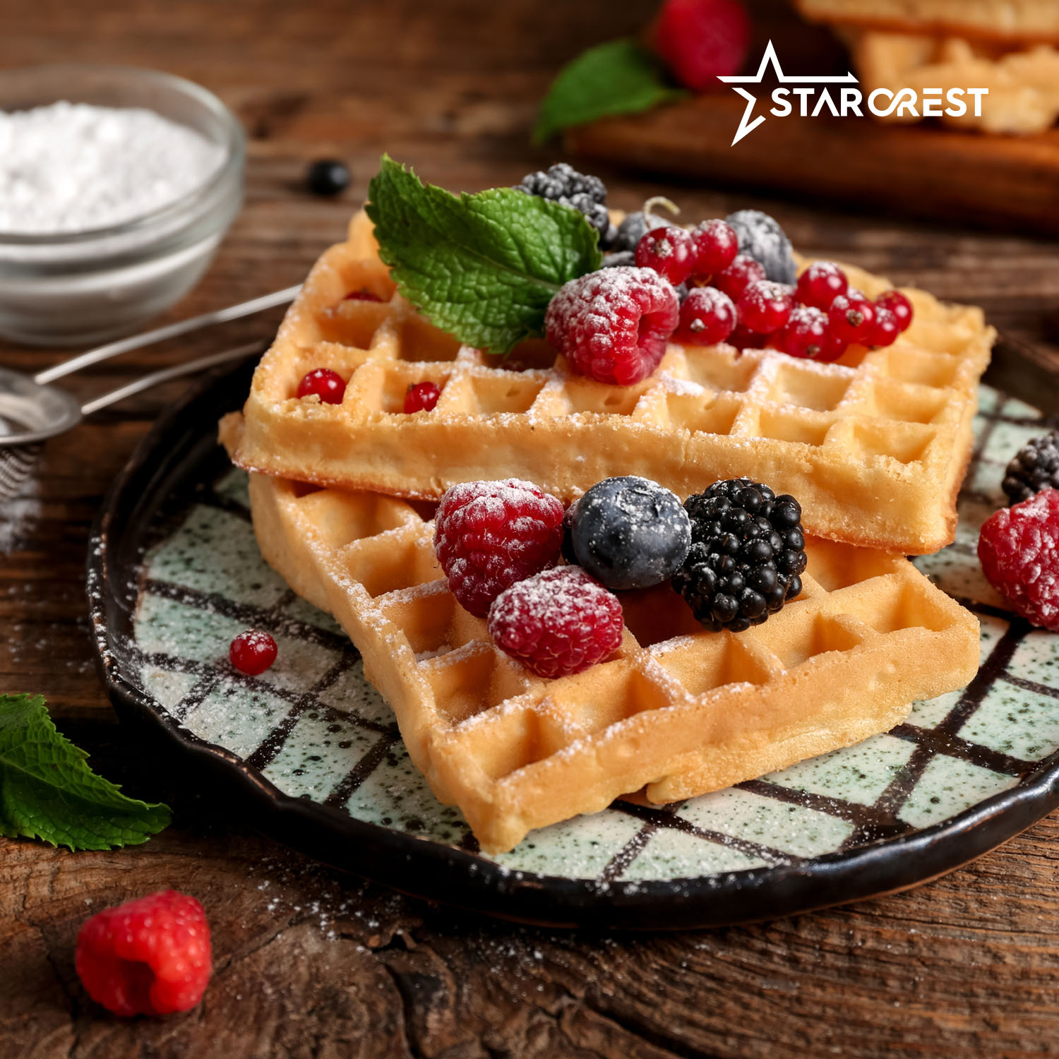 RESIGILAT - Aparat de facut vafe STARCREST WM-2503BX, 1600W, Buton reglare temperatura, Placi cu invelis ceramic, Negru/Inox