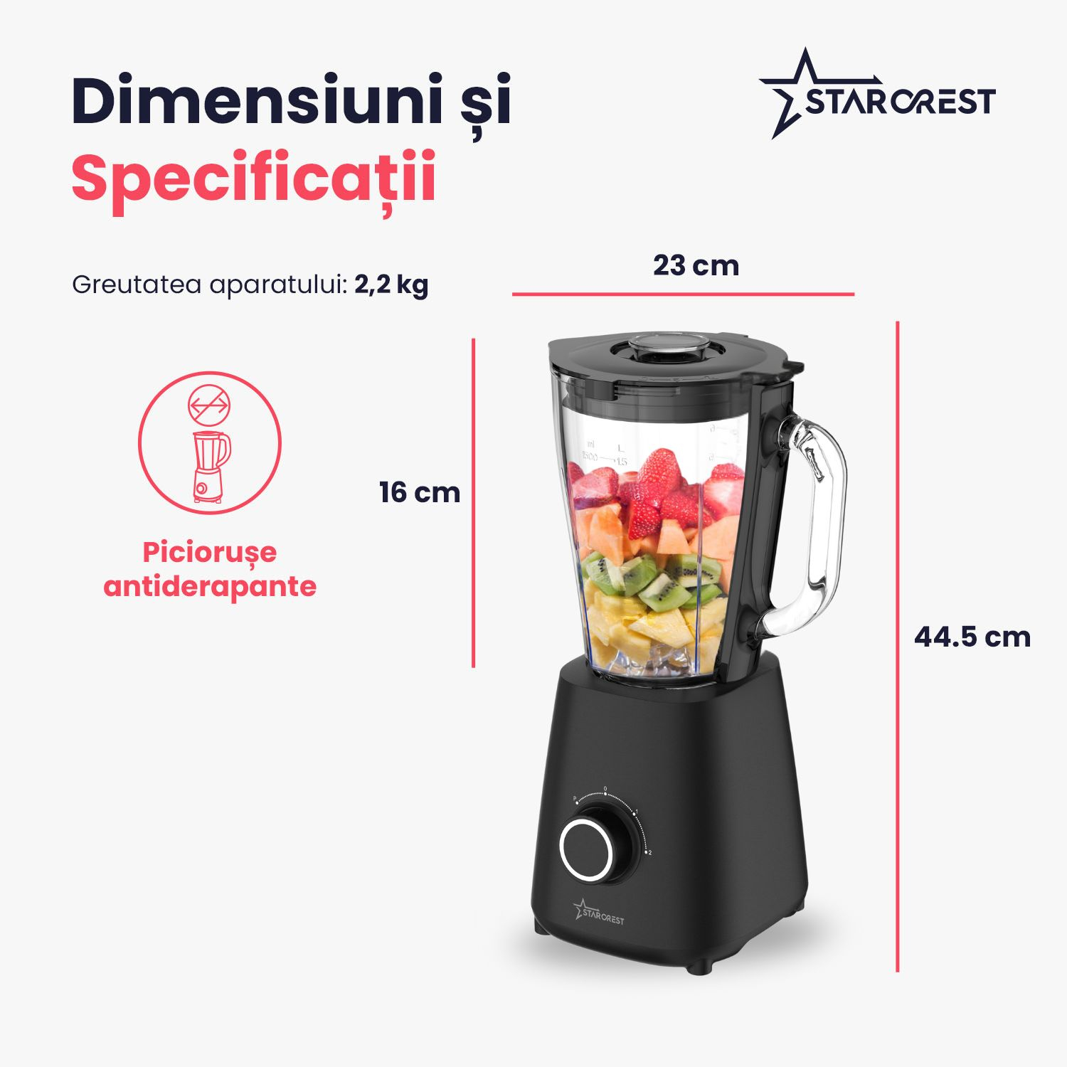 Blender STARCREST STB-15500B, 500 W, 1.5 l, 2 viteze + functie Pulse, Negru