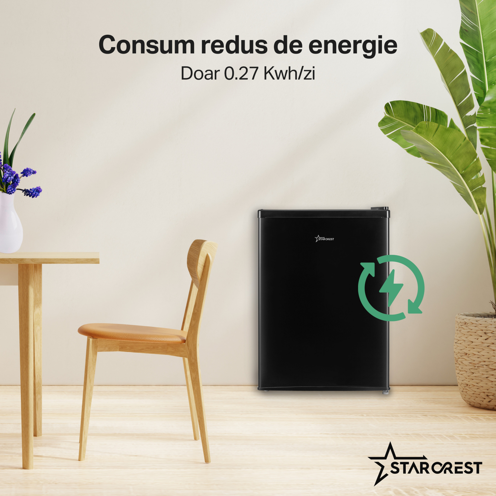 Frigider cu o usa STARCREST SF-660BLK, Clasa E, Capacitate 66 L, H 63 cm, Negru |