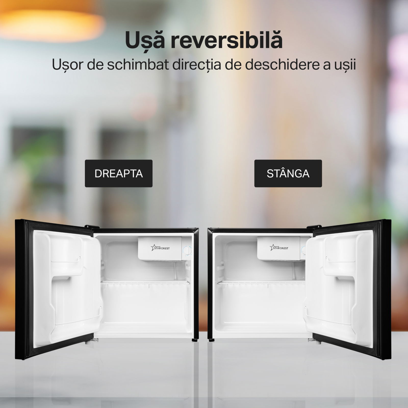 STARCREST RESIGILAT - Frigider minibar STARCREST SMB-47GLS-BK, Design modern, 46 l, Clasa E, H 48.8 cm, Sticla Neagra
