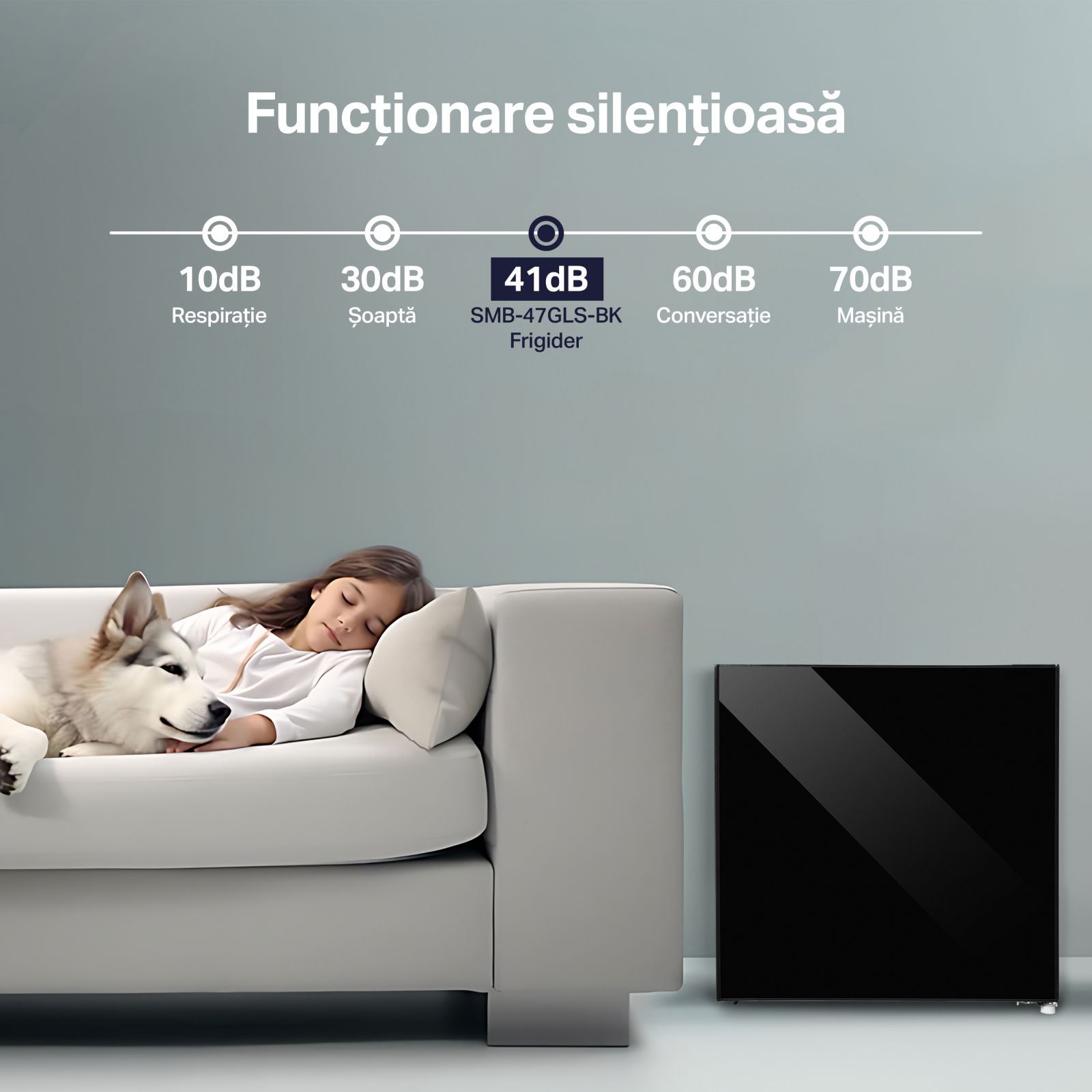 Frigider minibar STARCREST SMB-47GLS-BK, Design modern, 46 l, Clasa E, H 48.8 cm, Sticla Neagra