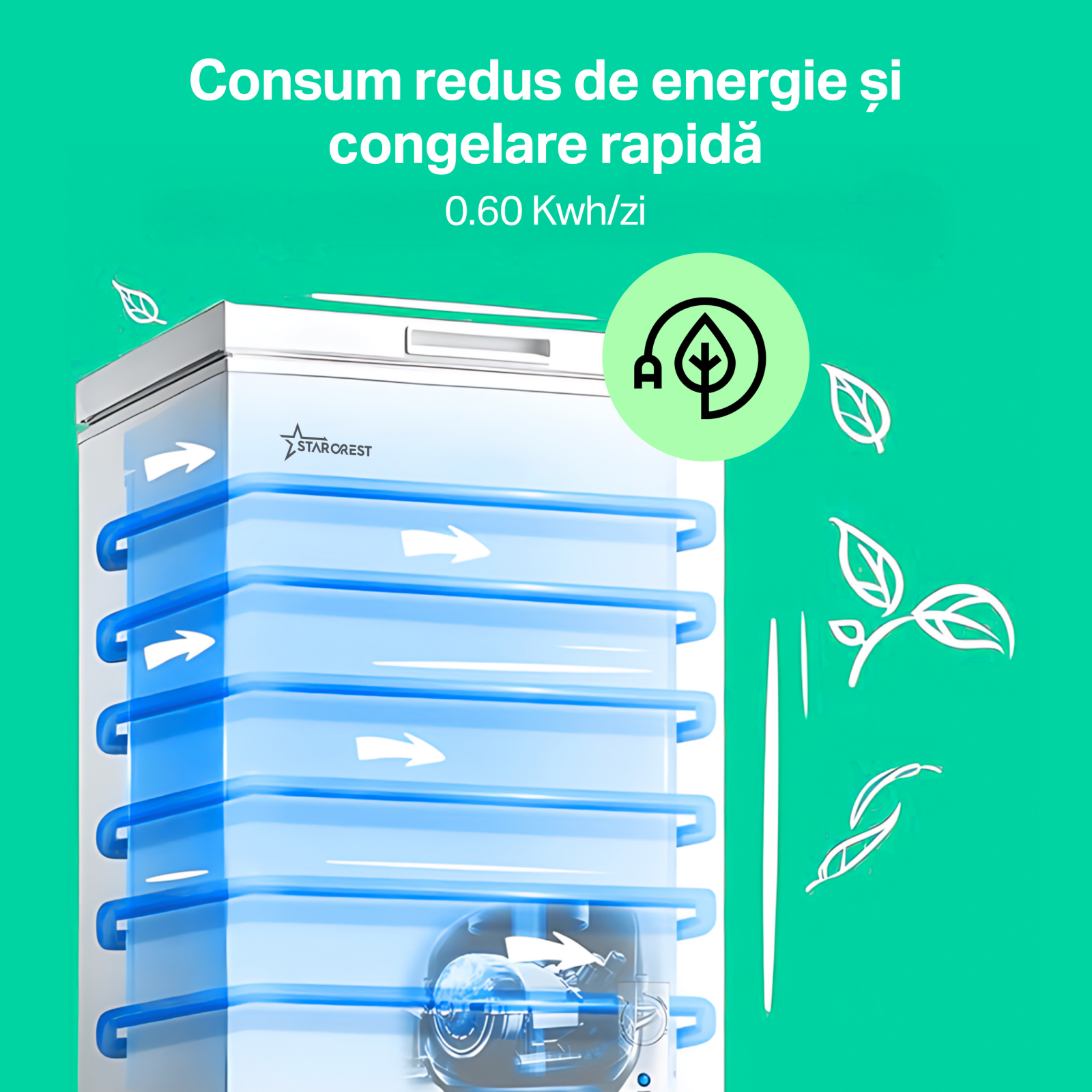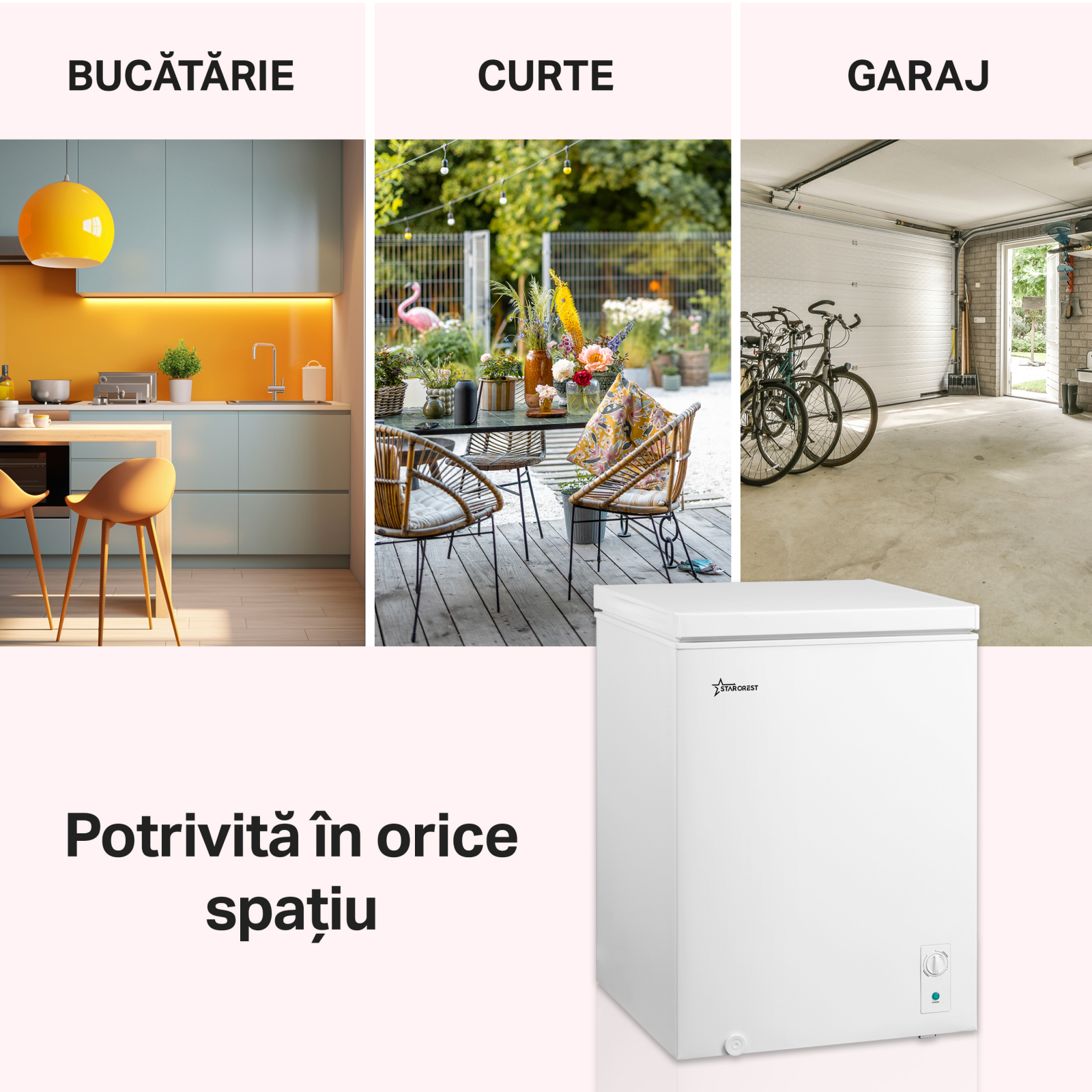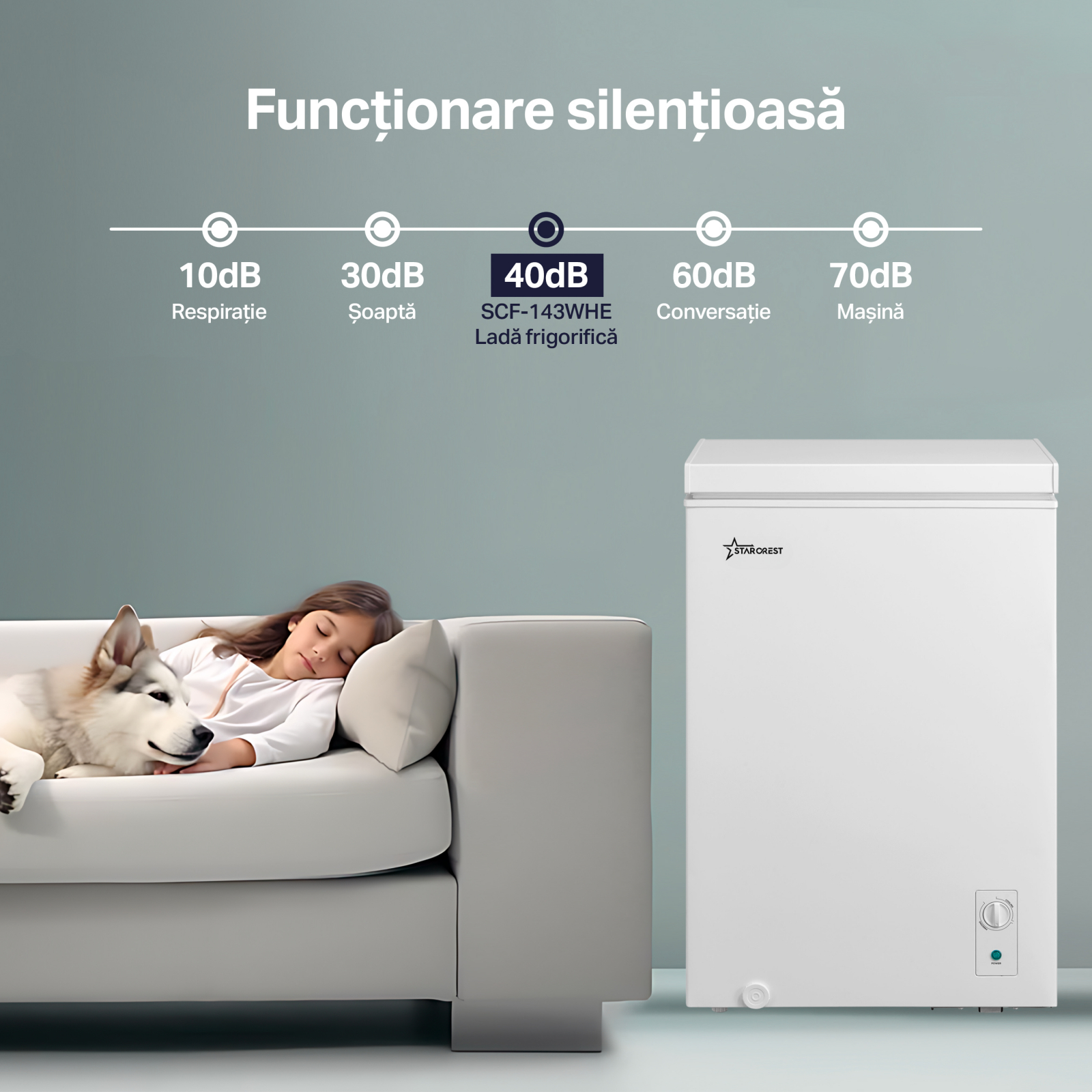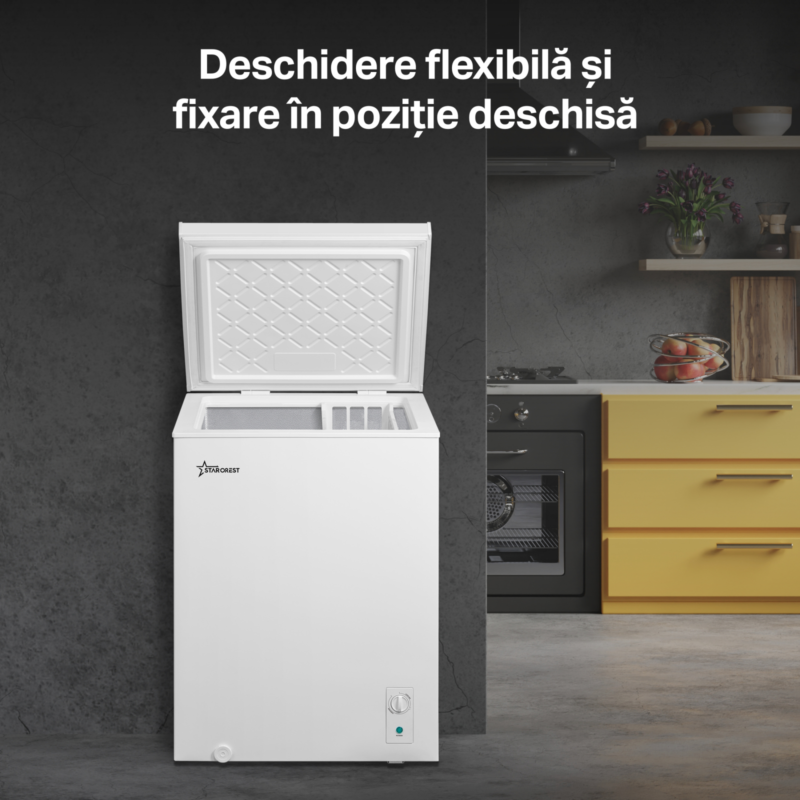 RESIGILAT - Lada frigorifica STARCREST SCF-143WHE, Clasa E, Capacitate 143L, Sistem convertibil - functie frigider, Termostat reglabil, Alb