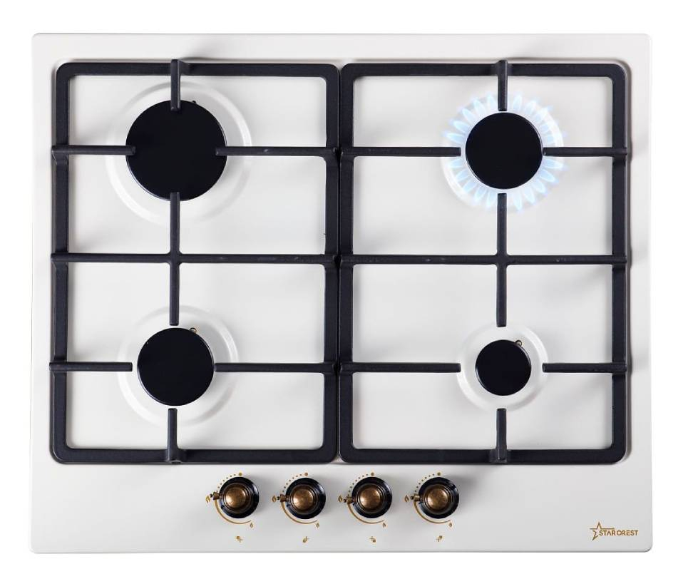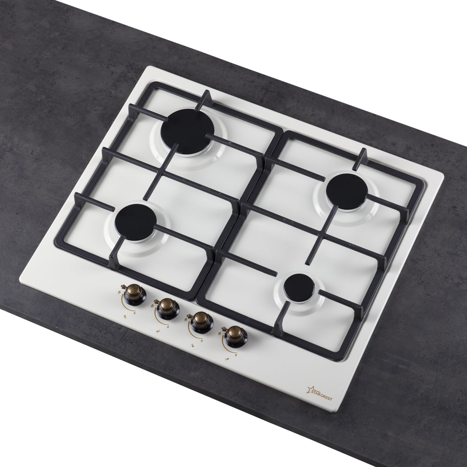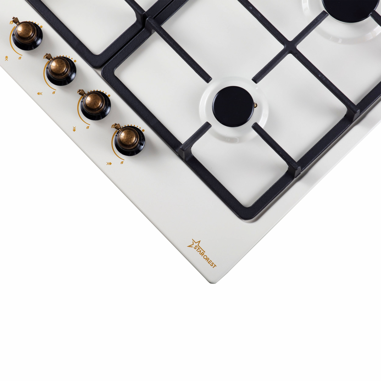 Plita incorporabila STARCREST SGH-4080CR, Gaz, 4 arzatoare, Aprindere electrica, Gratare fonta, Design Retro, Bej
