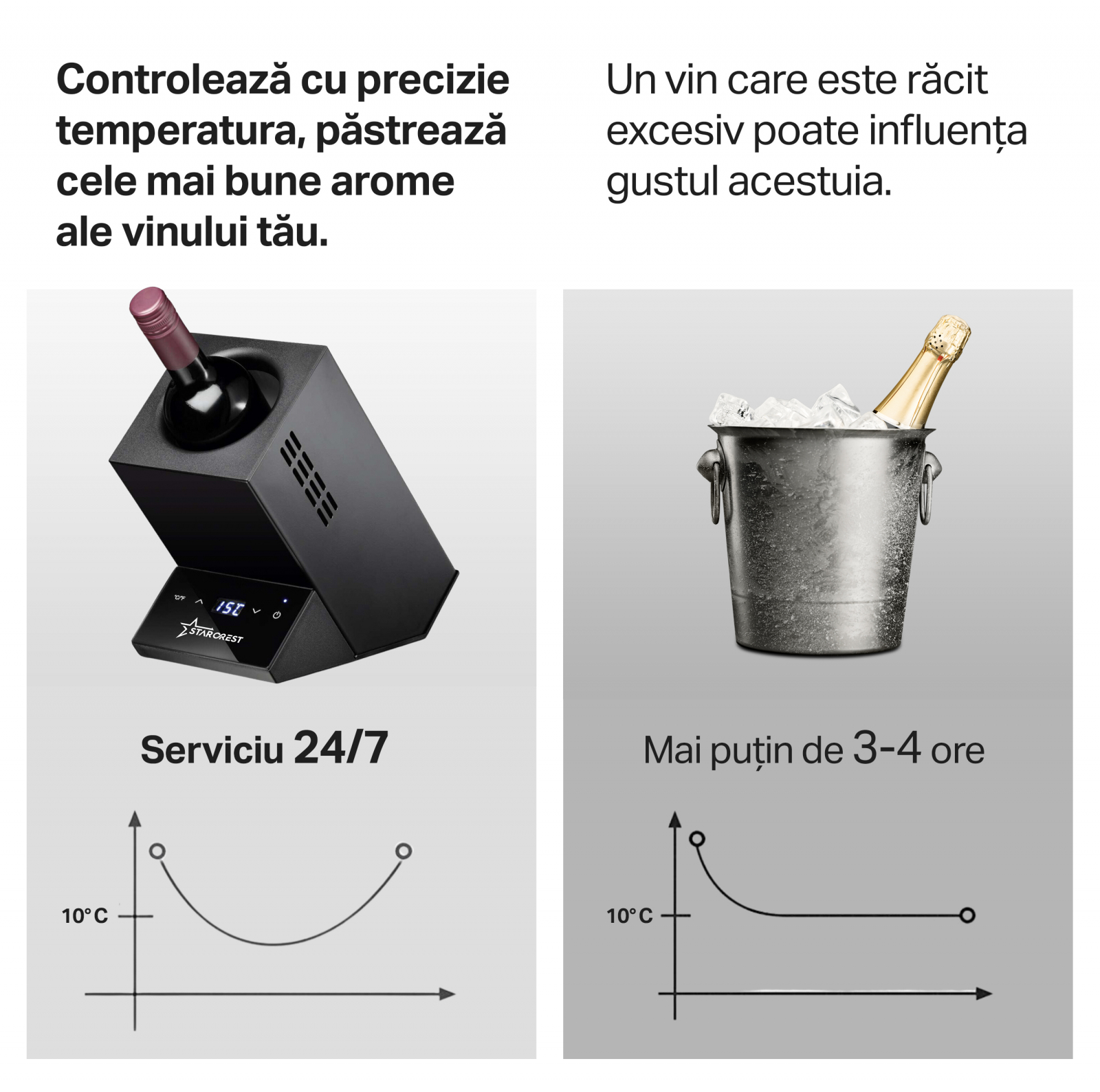 Indulciți-vă cu un vin de calitate premium la temperatura perfectă cu ajutorul racitorului de vin STARCREST, un accesoriu elegant și de înaltă calitate, perfect pentru a savura un pahar de vin în