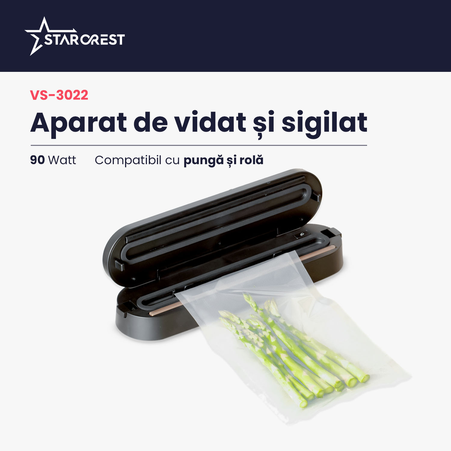 STARCREST VS-3022 este aparatul ideal care mentine carnea, pestele, fructele, legumele dar si cipsurile proaspete mai mult timp.