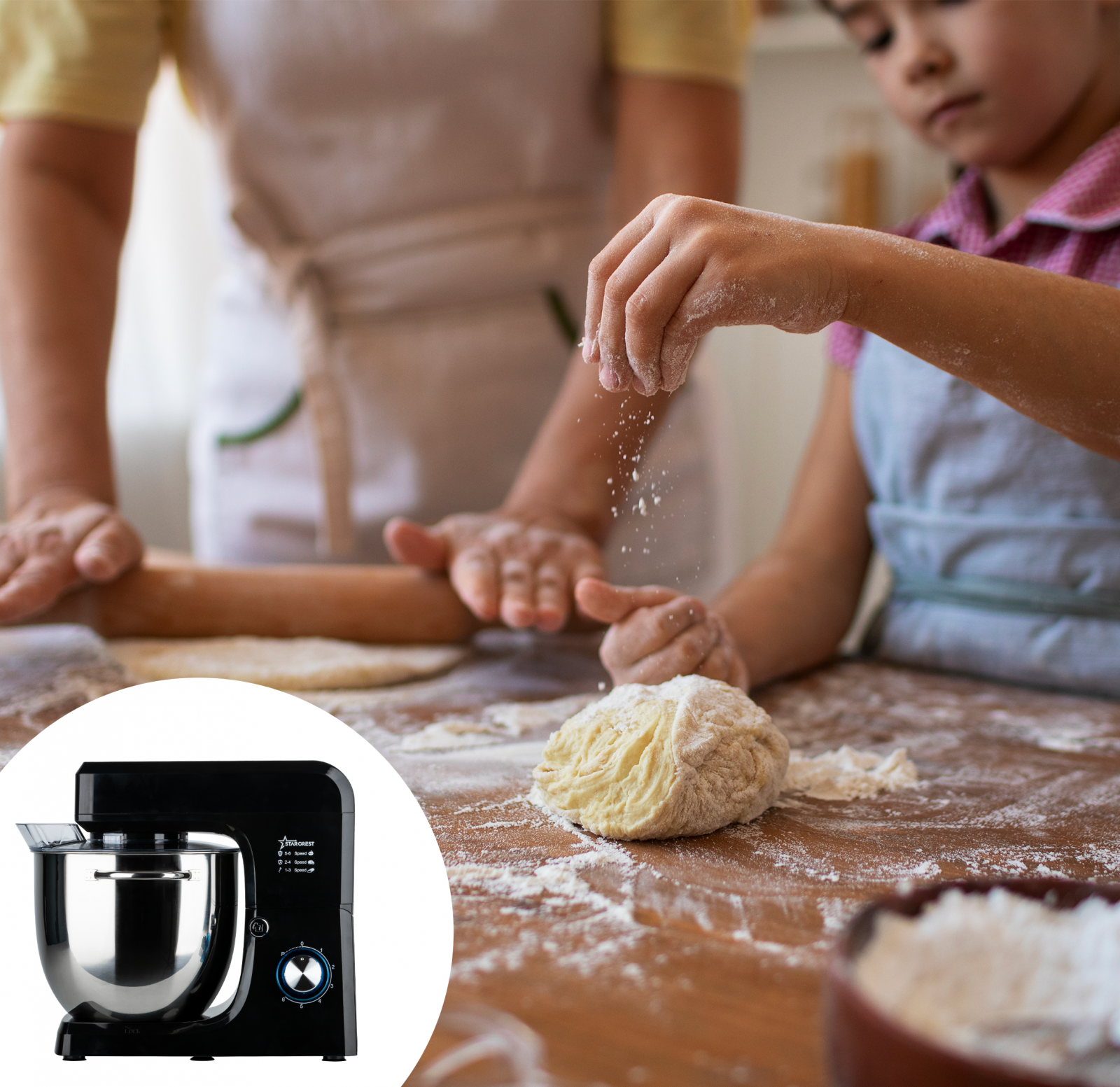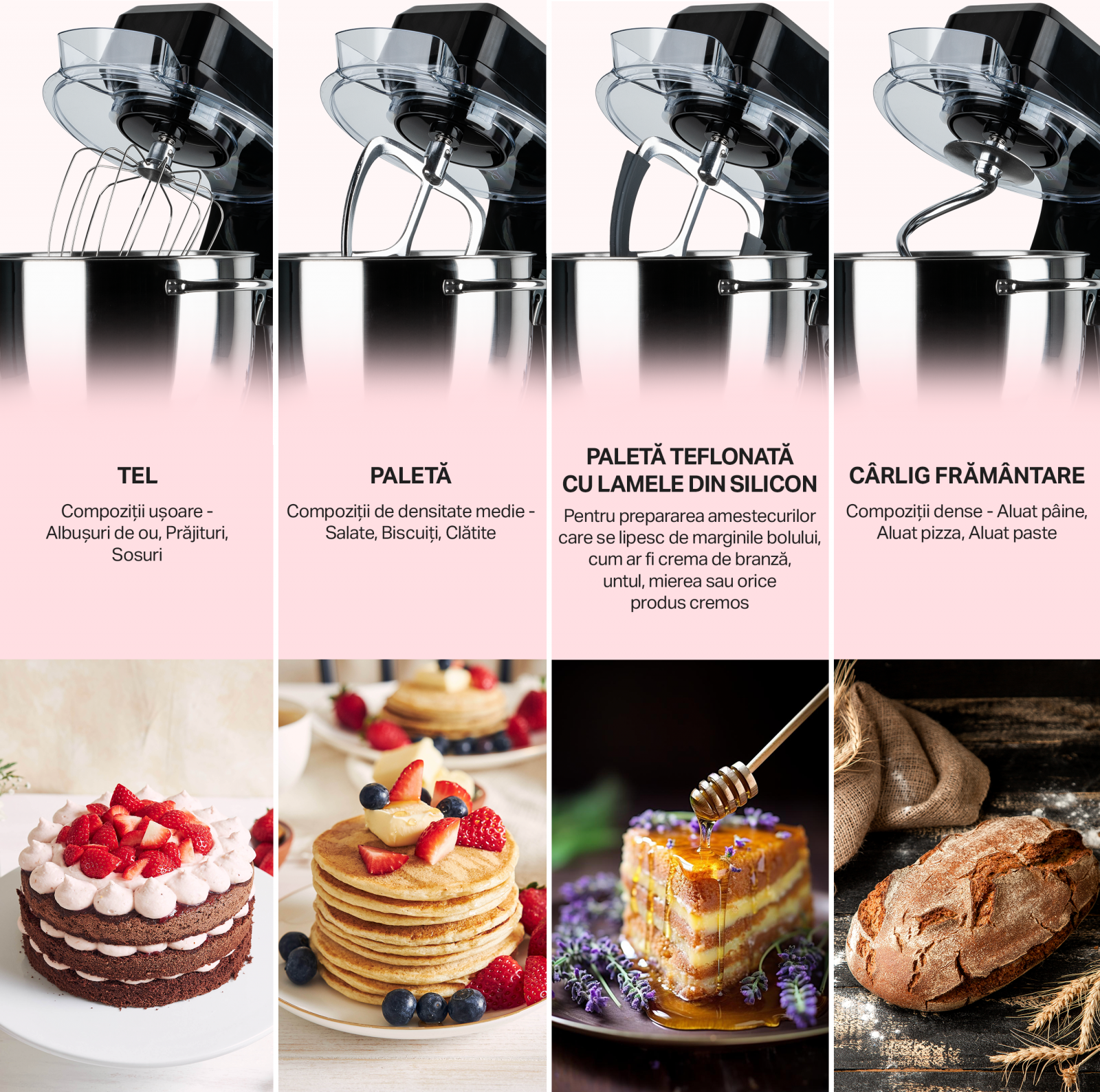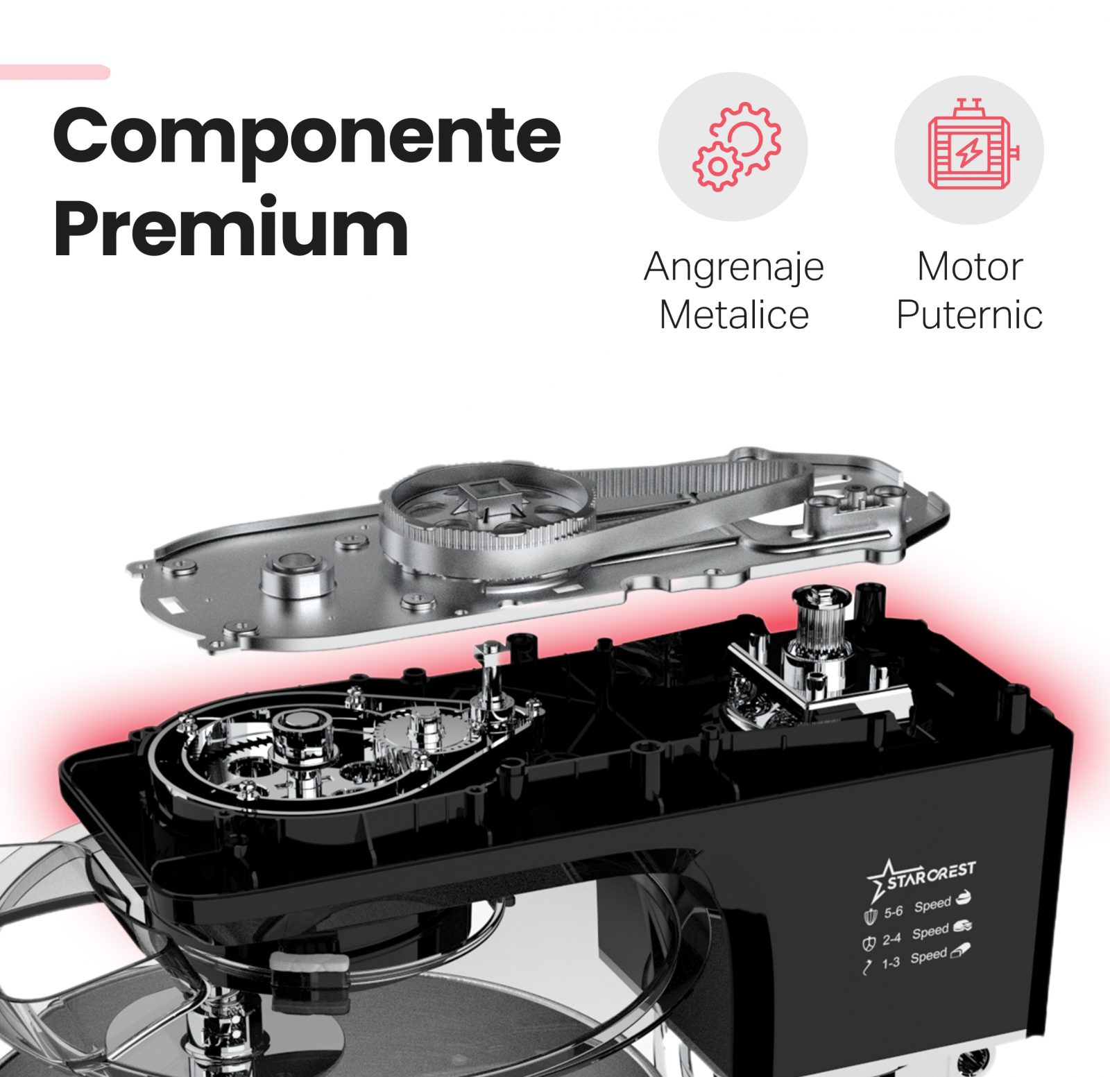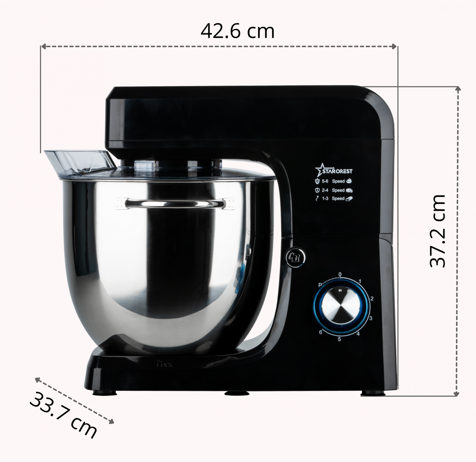 RESIGILAT - Robot de bucatarie profesional STARCREST SKM-2002BK, 2000 W, Bol 10 L Inox, 5 Accesorii, 6 Viteze + Pulse, Angrenaje metalice, Negru