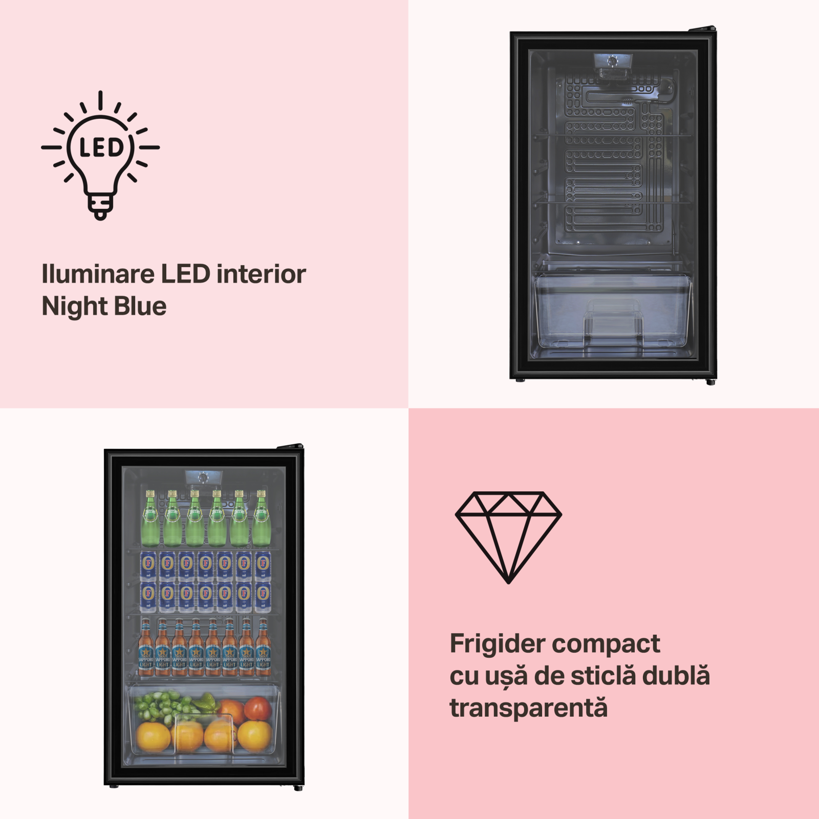 RESIGILAT - Vitrina frigorifica STARCREST SBC-9202BK, 93 L, Control temperatura, Usa sticla, H 83.2 cm, Negru