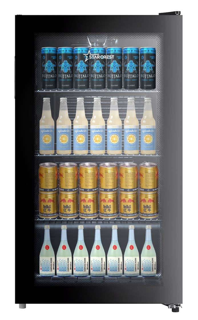 RESIGILAT - Vitrina frigorifica STARCREST SBC-9901BKE, 93 L, Termostat reglabil, Iluminare LED, Usa sticla, H 84.5 cm, Negru